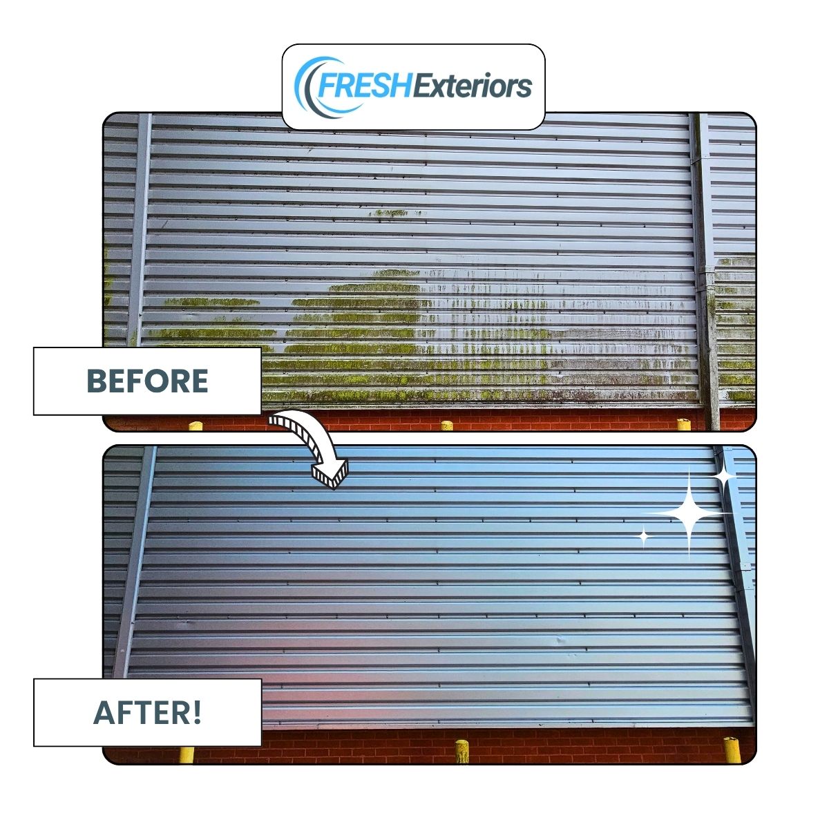 At Fresh Exteriors, we use safe, non-damaging cleaning methods to restore your cladding back to its best — whether it’s aluminium, steel, UPVC, or composite. Our specialist treatments remove grime and organic growth, improving your building’s kerb appeal while protecting the surface from long-term damage.